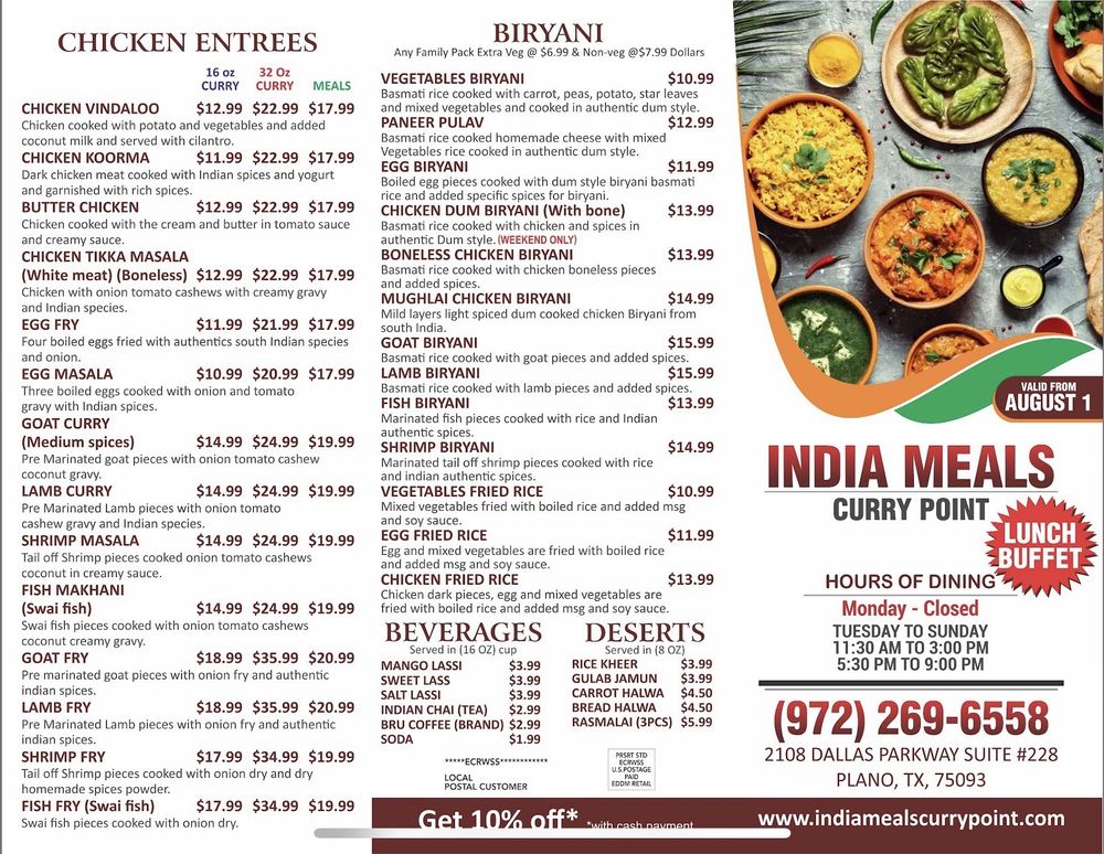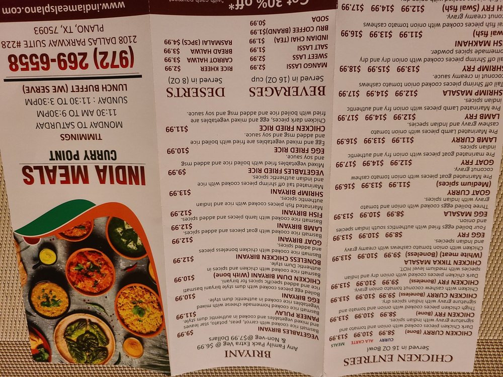India Meals Curry Point - Plano Menu