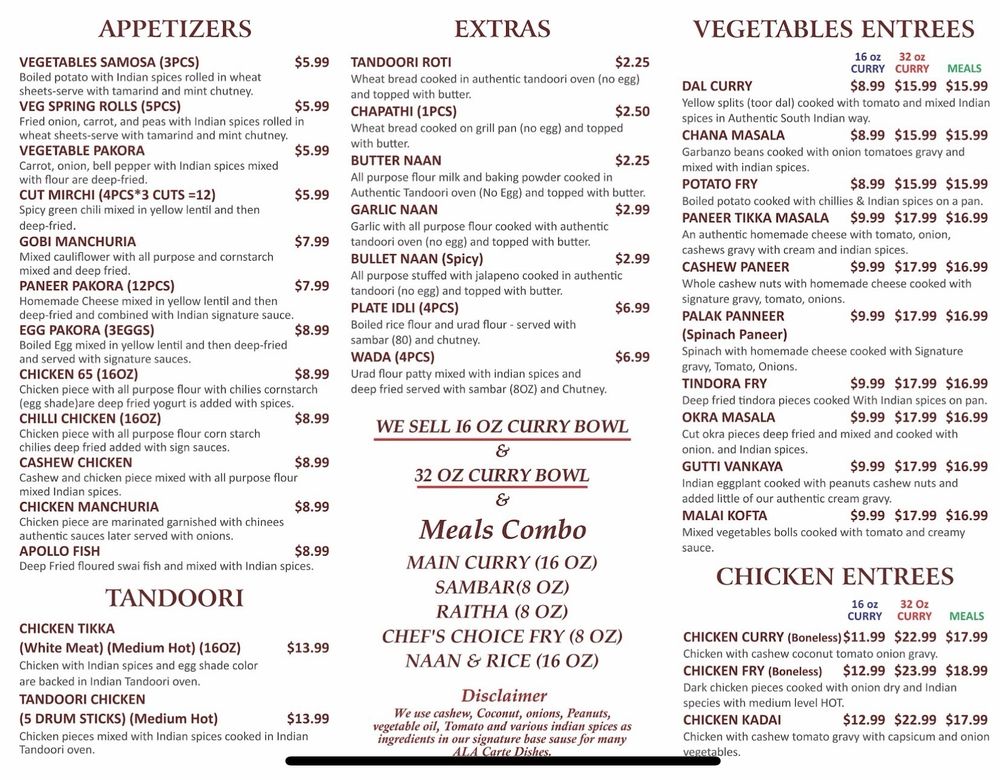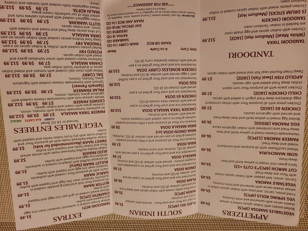 Introducing the Menu at India Meals Curry Point - Plano